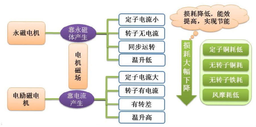 图2:传统电机与永磁电机对比 1、永磁电机节能原理: